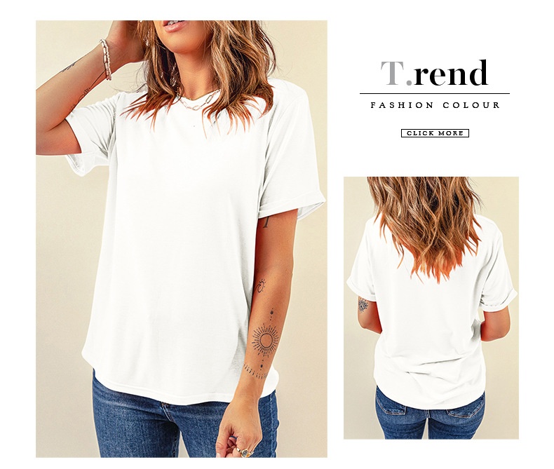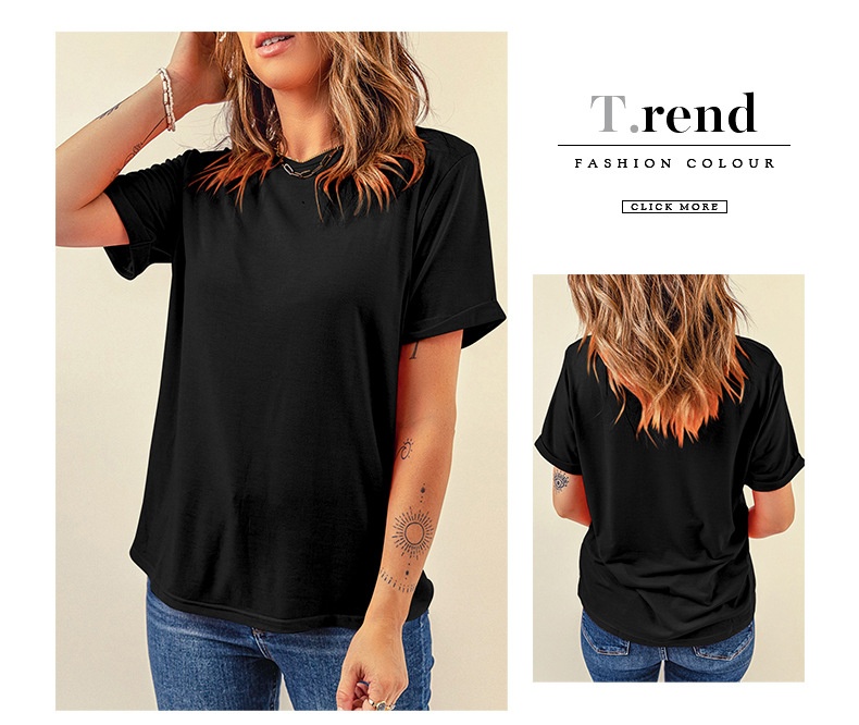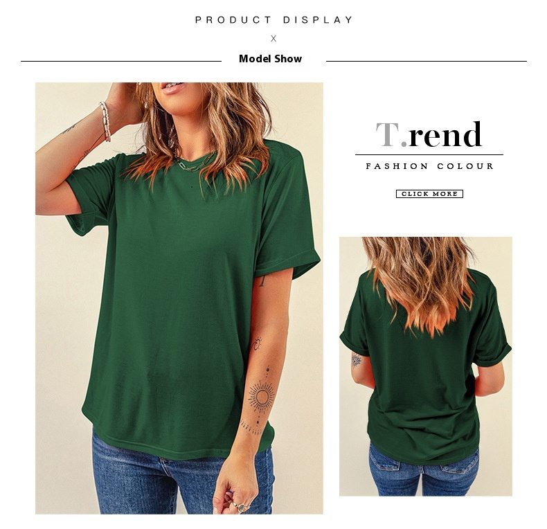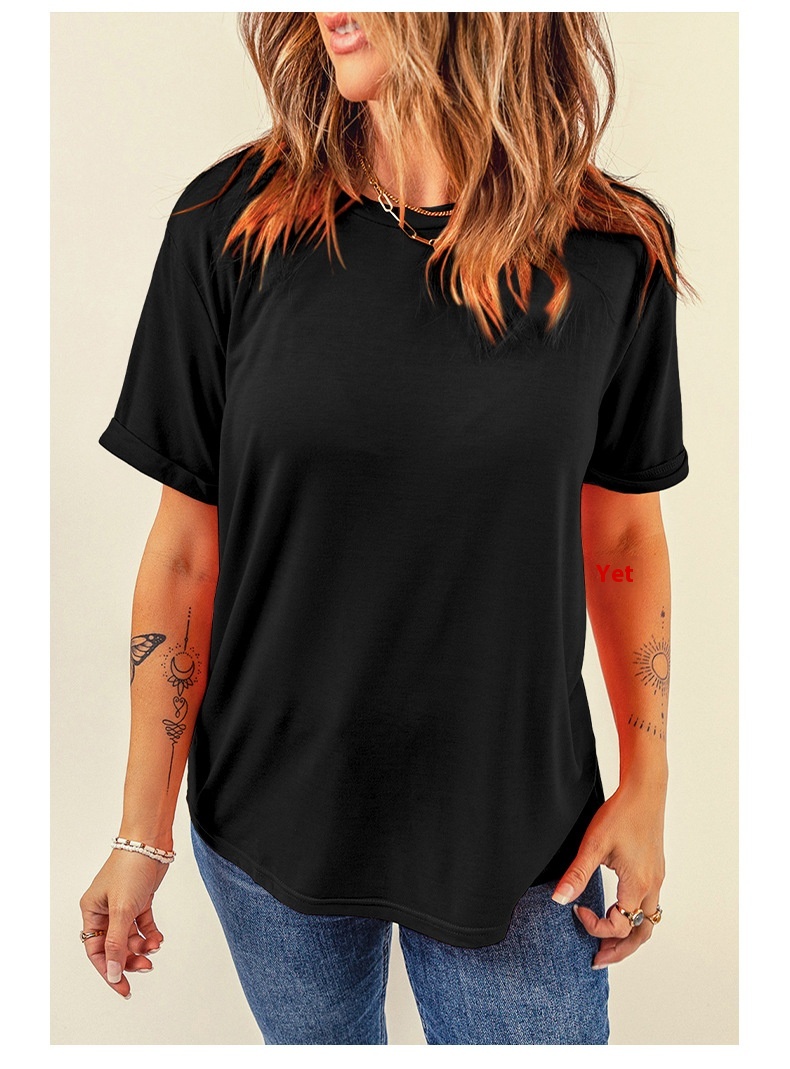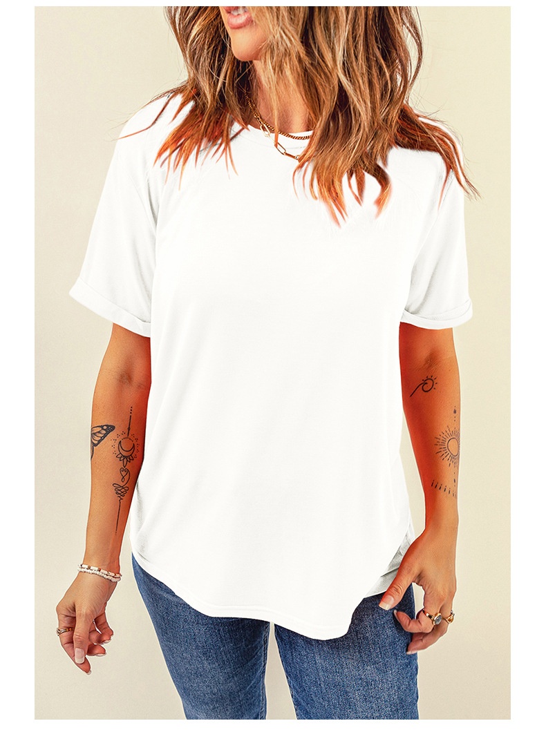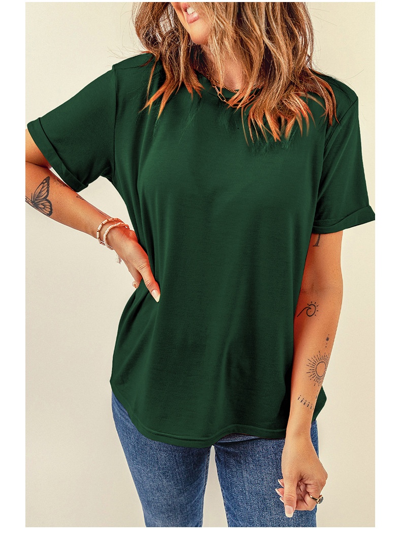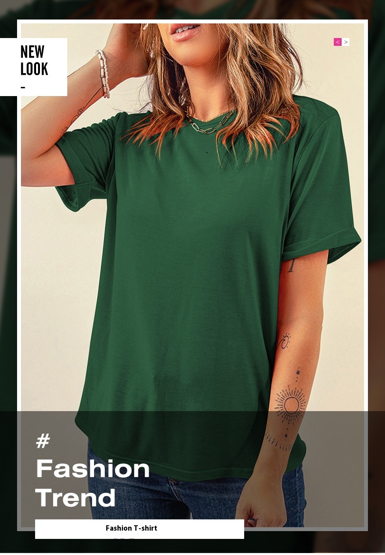 Solid Color Casual T-shirt Women's All-match Short-sleeved Pullover