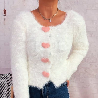 Commuter Cute Heart Button Solid Color Mink-like Knitted Cardigan Sweater