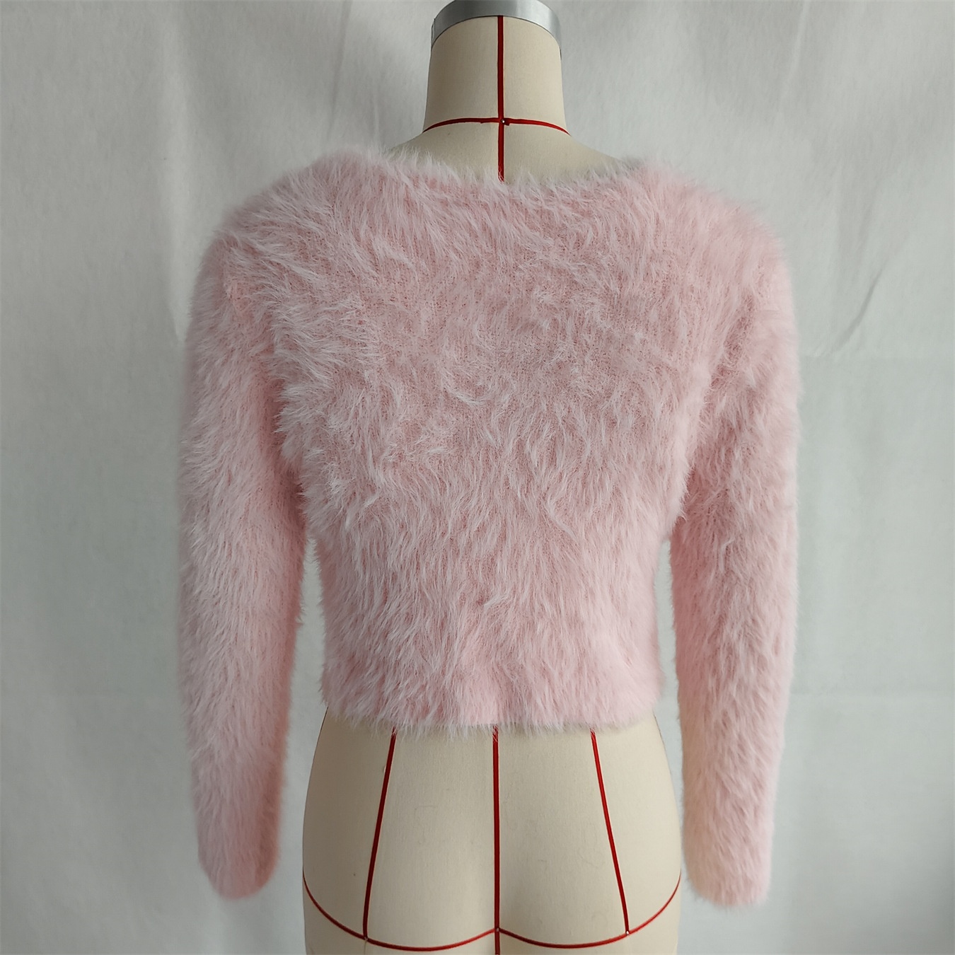 Commuter Cute Heart Button Solid Color Mink-like Knitted Cardigan Sweater
